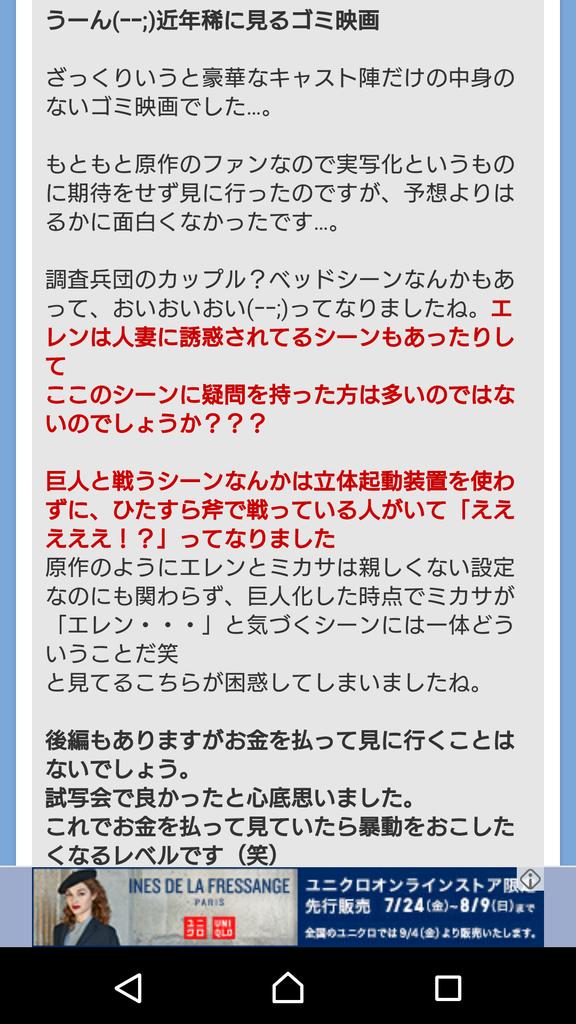 たると 実写映画 進撃の巨人 一般客レビューからも 1評価続出で酷評の嵐 近年稀に見るゴミ映画 Http T Co Naz3fimezq Http T Co 14x57gxkfb